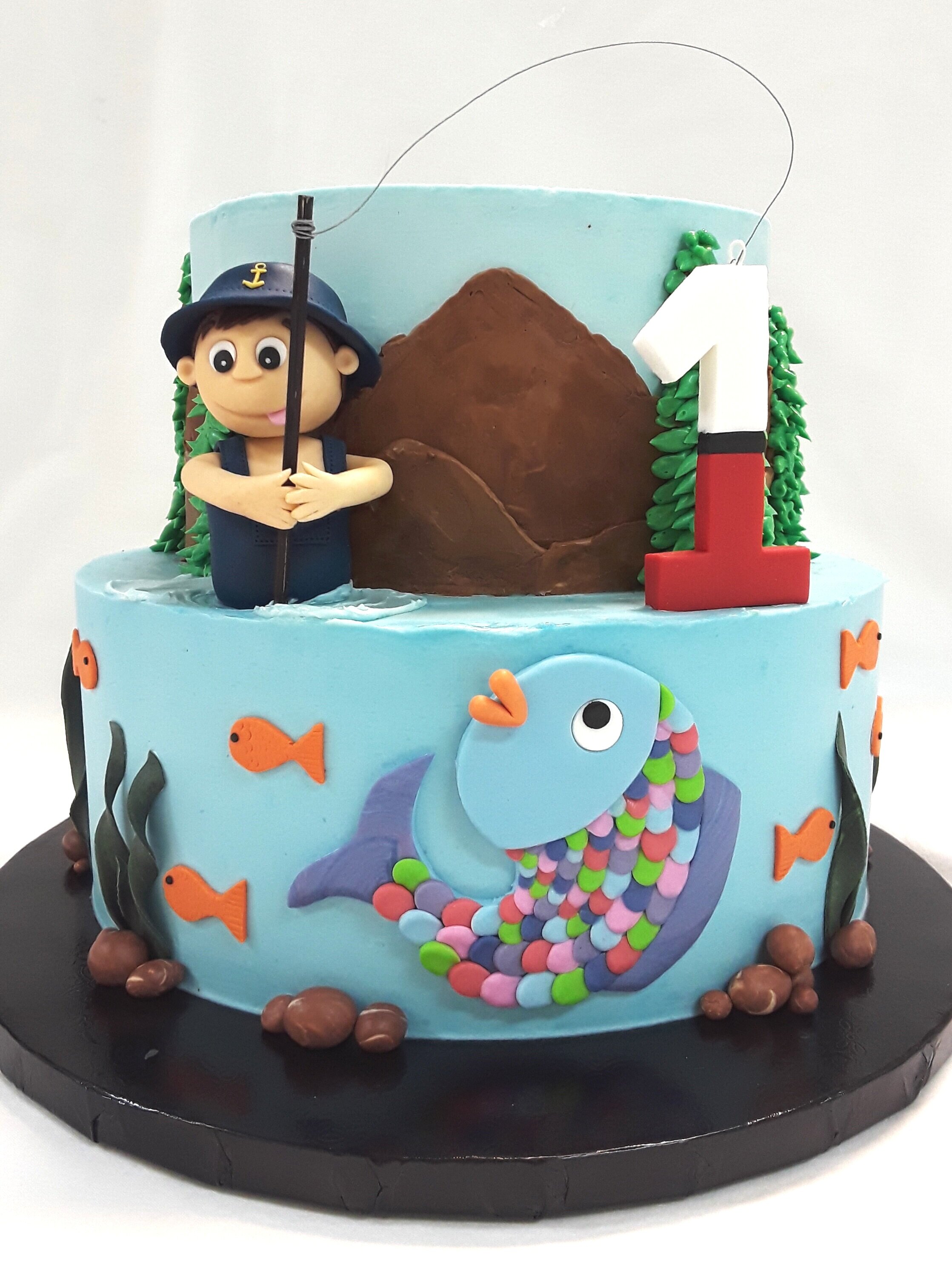 Raspberry cake filled with raspberry jam and lemon butter cream, covered in fondant and carved to look like a Swedish fish 9x3"