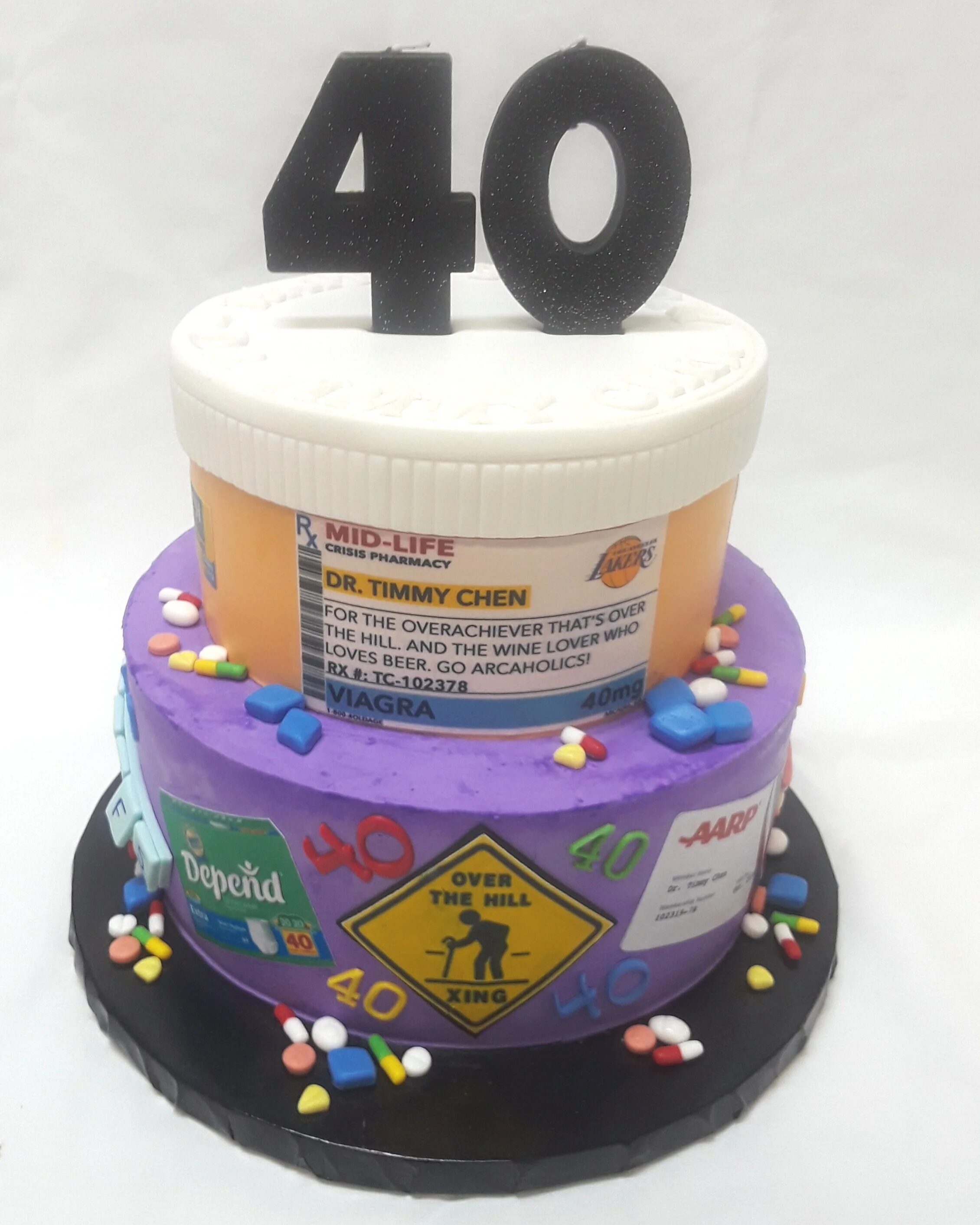 4 tier Maple Bacon Donut Custom flavor.  Brown Butter Cake, Maple Ganache, Bacon Crumble, Creme Brulee Mousse.